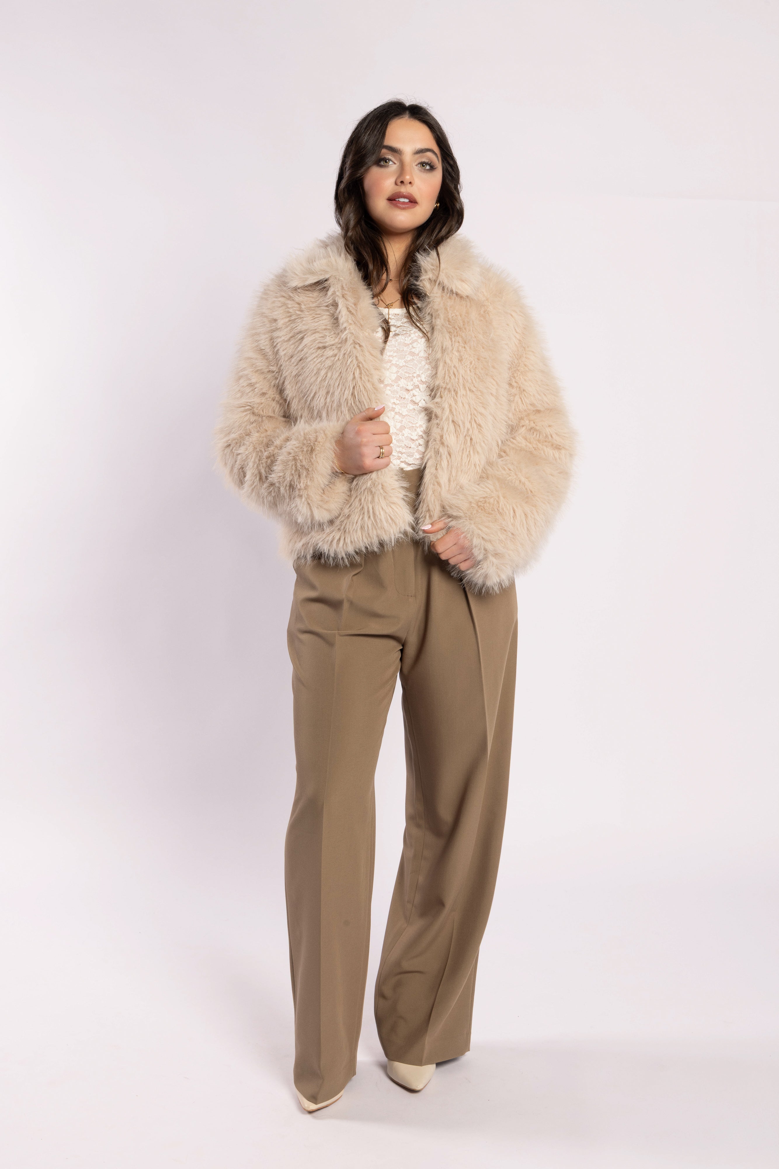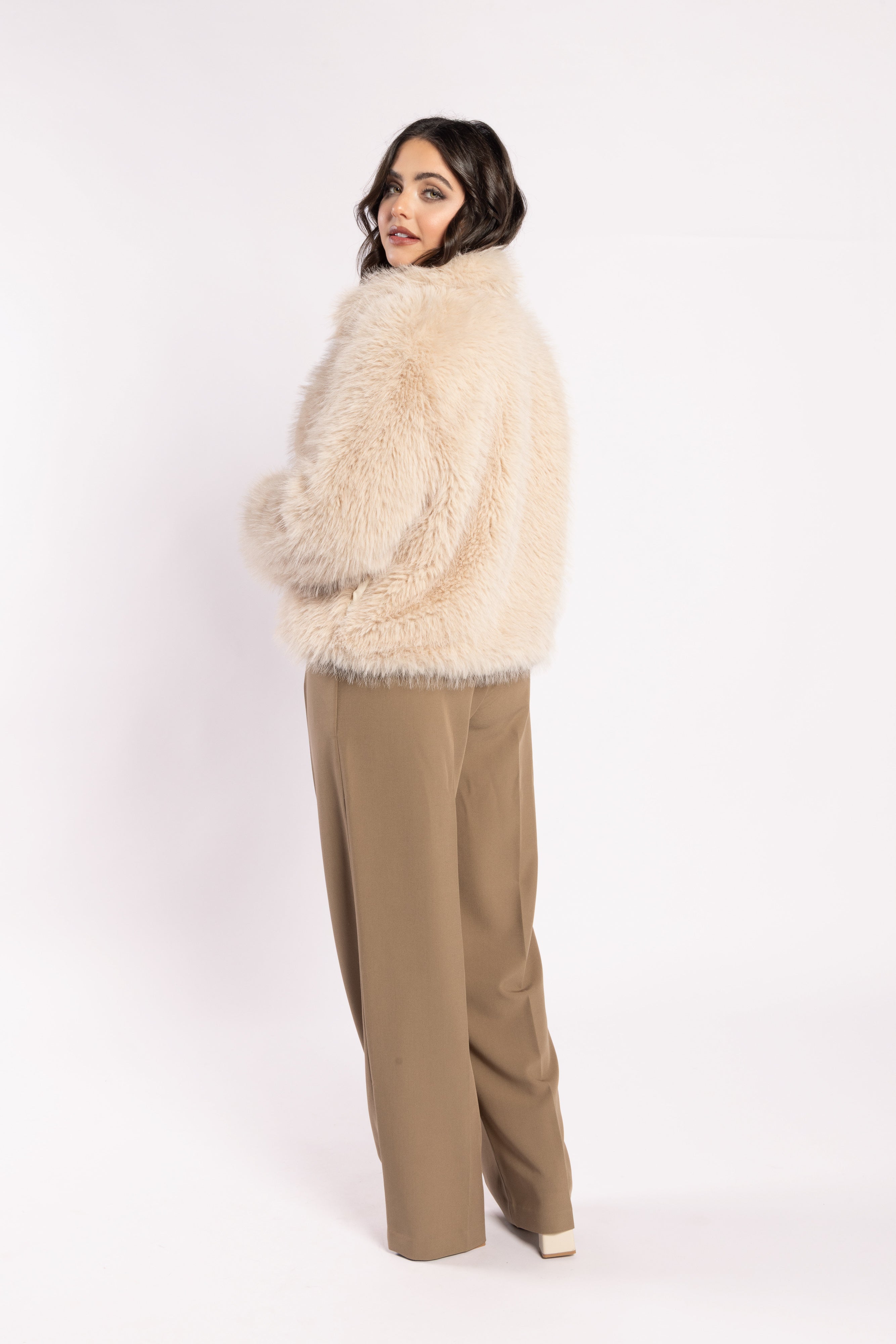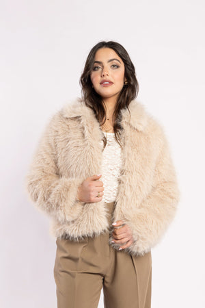 Crafted from plush faux fur, the Drama The Label Miaou Jacket delivers both comfort and style in a versatile biscuit tone.