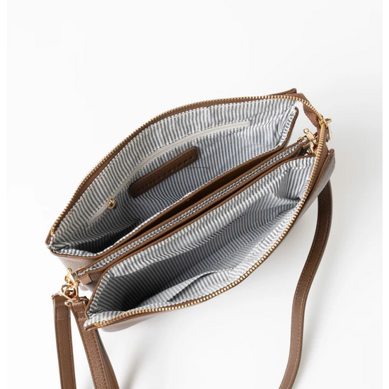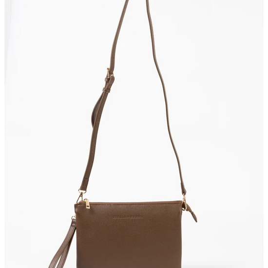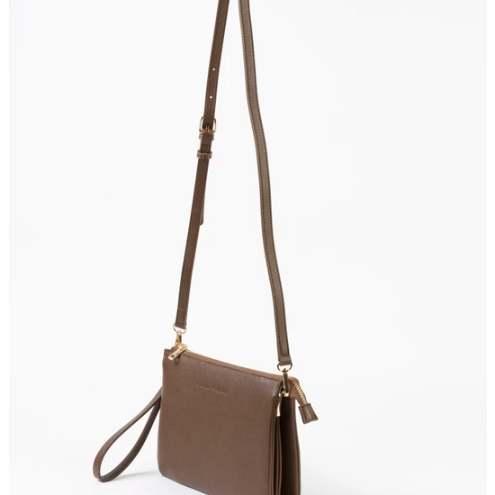 Features include full zip fastening, internal flat and zip pockets, removable wristlet and adjustable shoulder straps.