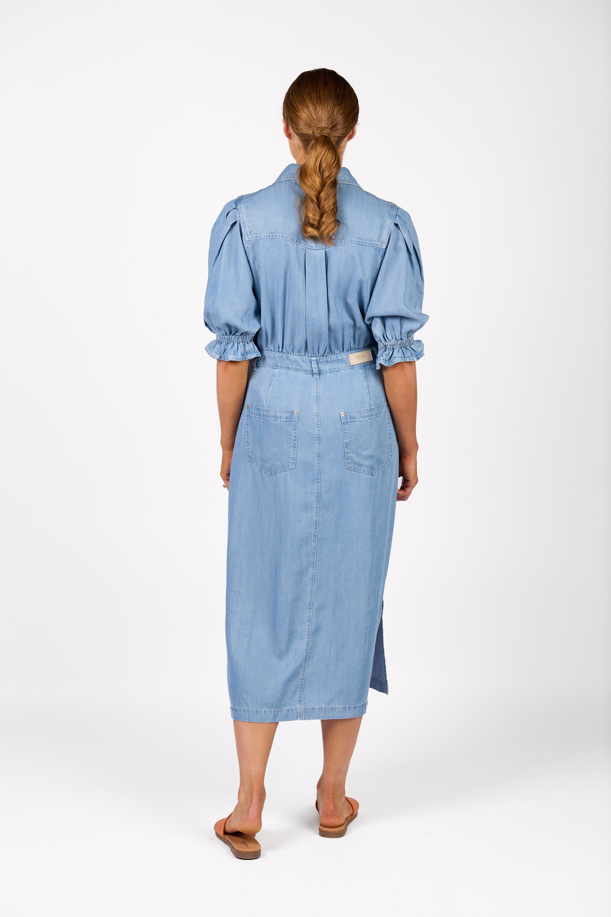 The Dual Dress offers a relaxed fit in lightweight Tencel with a denim-inspired look.