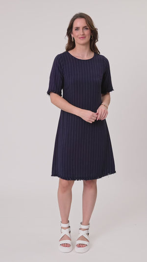 Lemon Tree Allegra Linen Dress - Navy Stripe