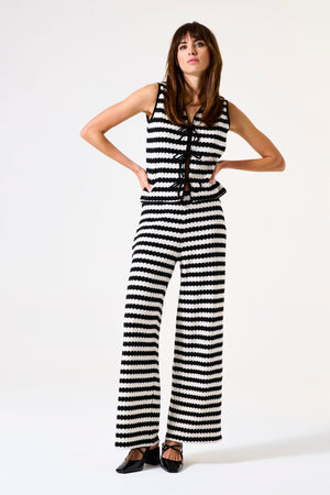 Bold black and white stripes create visual interest and versatility, allowing you to pair them effortlessly with minimalist tops or wear as a set with the matching top
