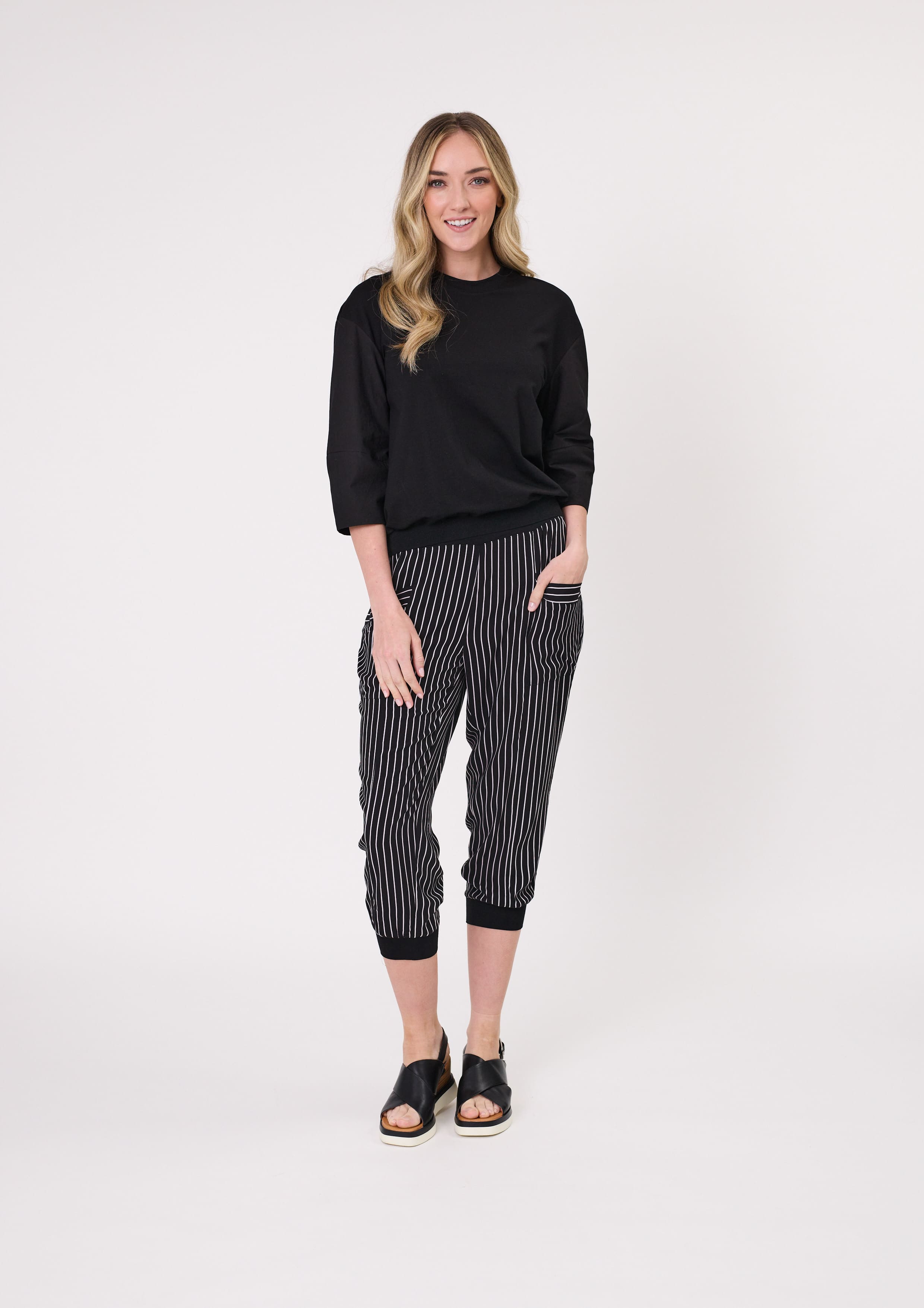Loose fit with cropped length and side pockets for everyday ease.
