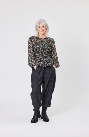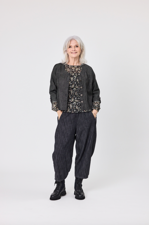Crafted from pure cotton in a rich, textured black denim, the Lemon Tree Sonja Pant features a distinctive balloon silhouette construction that tapers elegantly at the ankle.