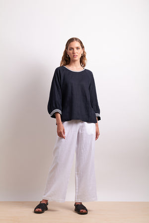 Cut from breathable 100% linen, the Highlife Pant is a relaxed wide-leg