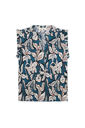Crafted from 100% recycled polyester, this printed top delivers contemporary style with an eye-catching design.