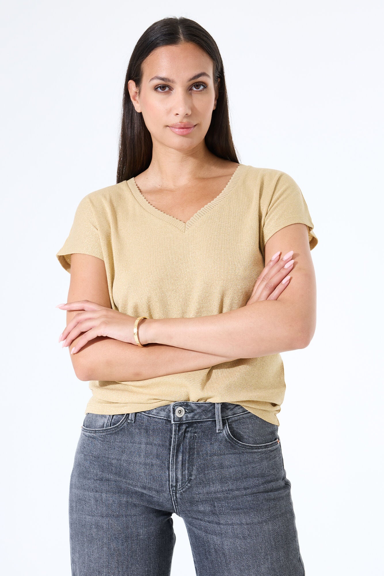This Garcia V-Neck Top features a regular fit, short sleeves, and a V-neckline, adding a touch of glamour to any outfit.