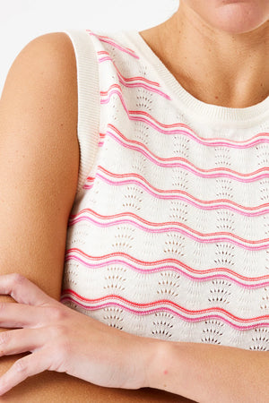The Garcia Sleeveless Top in Ecru Stripe delivers effortless warmth-weather dressing with its breathable knit construction.