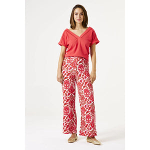 The V-neckline and rolled short sleeves create a contemporary silhouette, while the relaxed cut ensures all-day comfort.