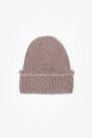 Soft wool blend beanie with pearl edging