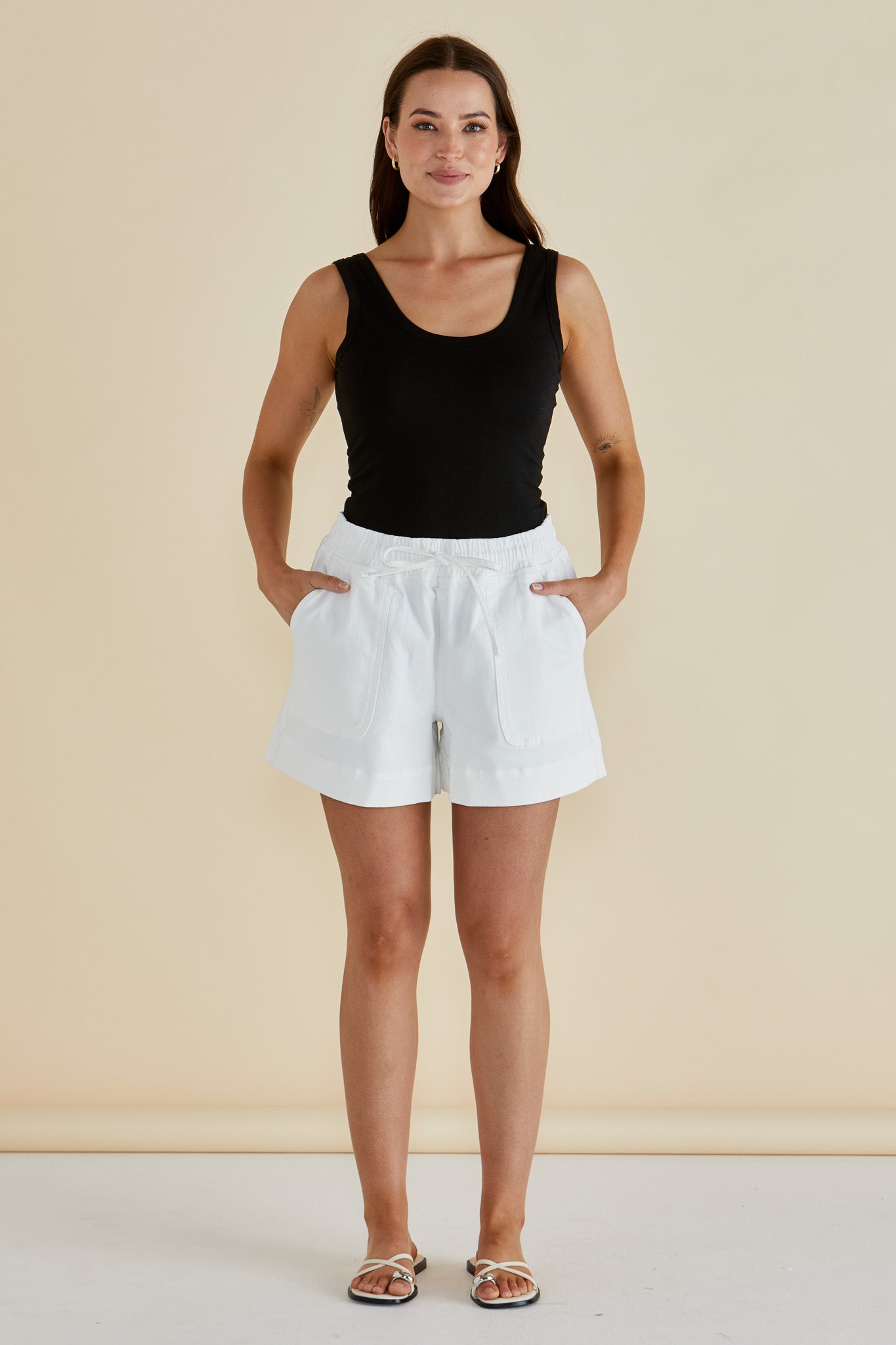 Designed for comfort and ease, the Relax Denim Shorts feature an elasticated waistband with drawstring for a perfect fit. Crafted from a soft denim feel, they have practical patch pockets and a mid-high rise silhouette. An effortless, elevated choice for transeasonal casual days. Classic style meets relaxed comfort.