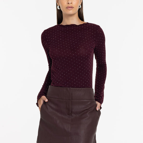 Blak Gigi Top - Burgandy with Silver Diamantes