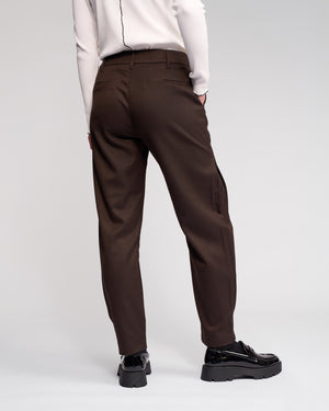Relaxed-leg ankle-grazer pant in black, designed with an inverted pleat running along the side seams.