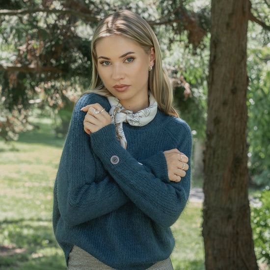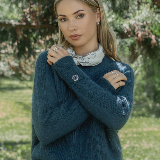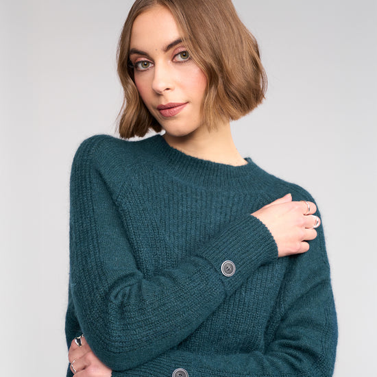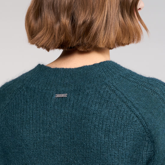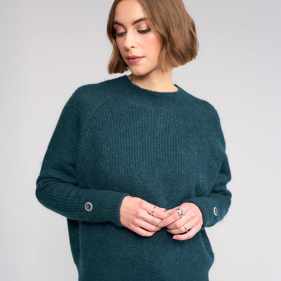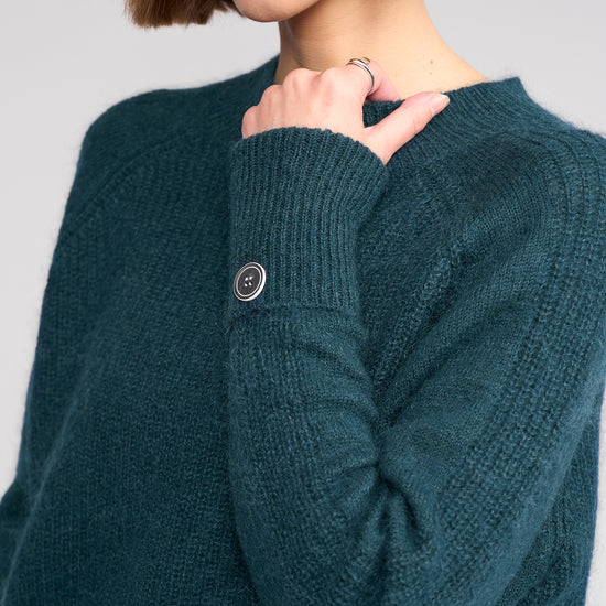 Relaxed-fit knit jumper in a rich Mallard green, crafted from a soft blend including mohair and wool for warmth and texture.
