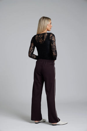 The Nes Double Piped Gin Pant in Burgundy combines timeless style with everyday comfort.