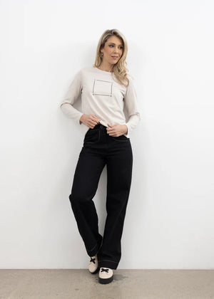Crafted from soft cotton fabric, this long-sleeve tee features a relaxed fit that gently shapes around your body—scooping at the hem and curving softly through the bodice to sit just above the hip.